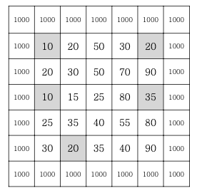 격자의 가장자리는 1000으로 초기화 되었다고 가정한다.