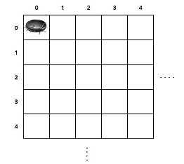 이차원 배열 격자판 0행 0열이 청소 로봇의 시작위치입니다.