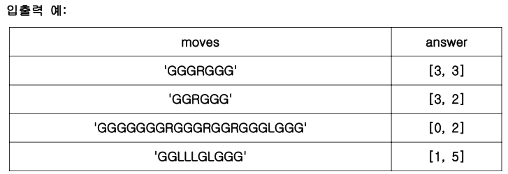 print(solution('GGGGGGGRGGGRGGRGGGLGGG'))