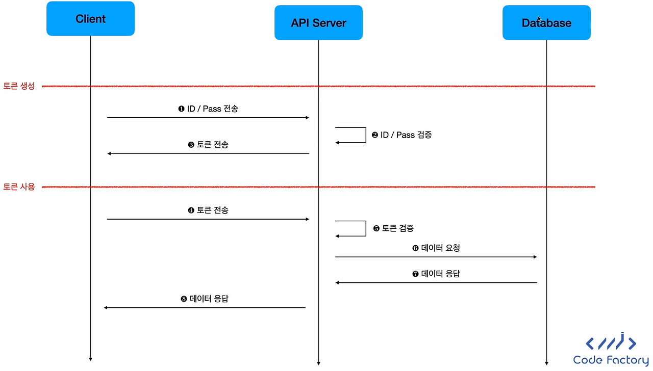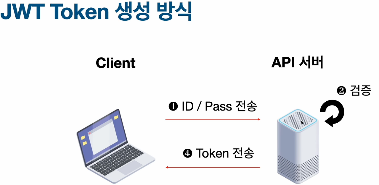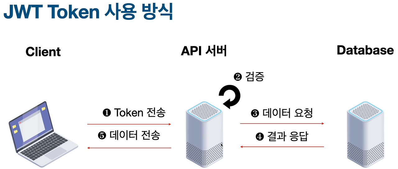 - 클라이언트에서 요청을 보낼때 JWT Token을 같이 보내면 현재 요청을 보내는 사용자가 누구인지 서버에서 알수 있다.(매 요청마다 아이디와 비밀번호를 물어볼 필요가 없다.)