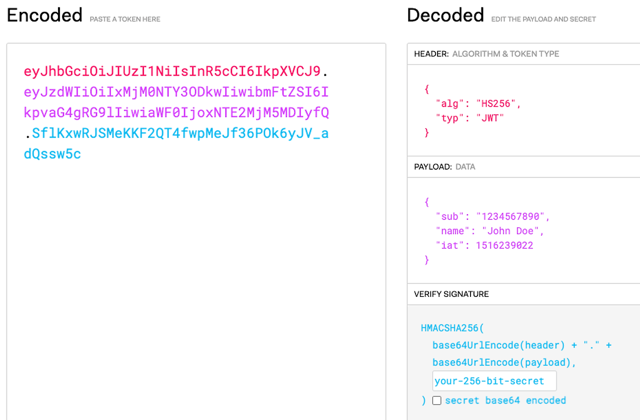 빨간색(header), 보라색(payload), 파란색(verify signature)로 구분이 된다.
