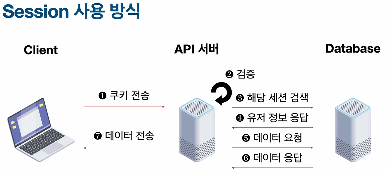 - 클라이언트에서 요청을 보낼때 Session ID를 같이 보내면 요청을 보내는 사용자가 누구인지 서버에서 알수 있다.(매 요청마다 아이디와 비밀번호를 물어볼 필요가 없다.)