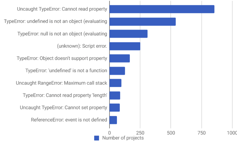 위 통계 자료는 rollbar 에서 정리한 자바스크립트로 개발한 프로젝트에서 가장 많이 발생한 에러 TOP10이다.