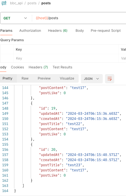 id가 1-20까지의 데이터를 조회 했으니 이제 21-40까지의 다음 페이지 게시물 데이터를 조회 해야한다.