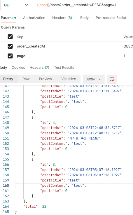 위와 같이 페이지 별로 게시물 데이터를 정렬 하려 잘 가져올 수 있다.