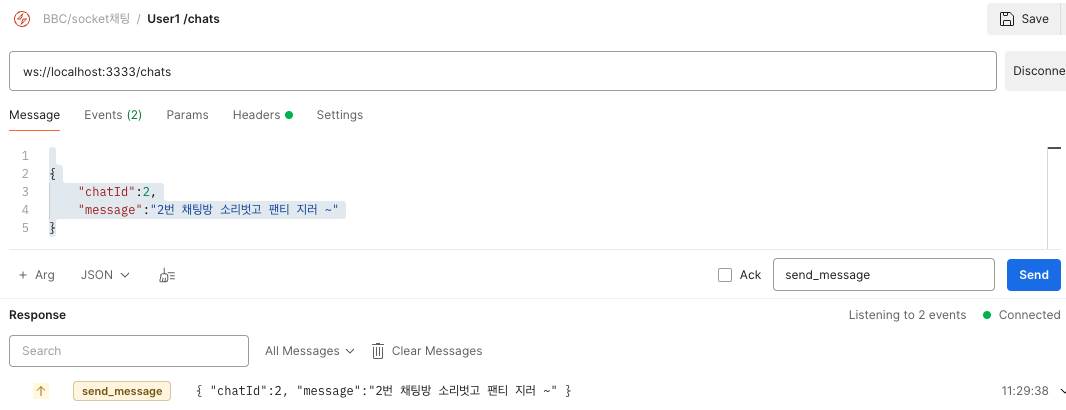 새로운 다른 2번 채팅방에 메시지를 몇개를 보내니 . 잘보내진다.