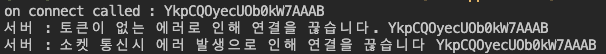 소켓 헤더에 토큰이 없으면 위와 같이 바로 에러 문구와 함꼐 연결이 끊킨다.