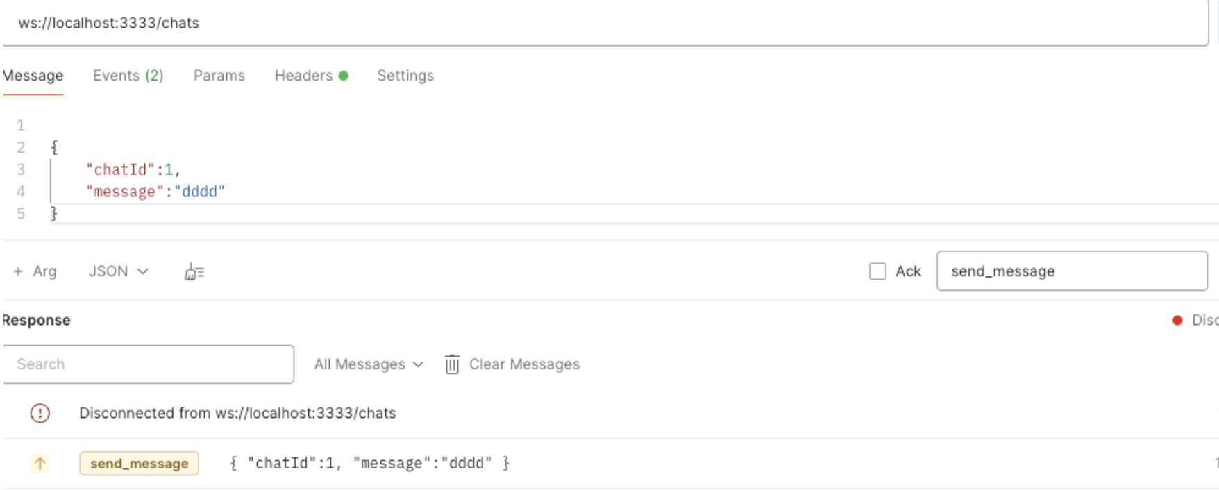 이전에 생성한 1번 채팅방에 dddd라는 메세지를 보낸다.