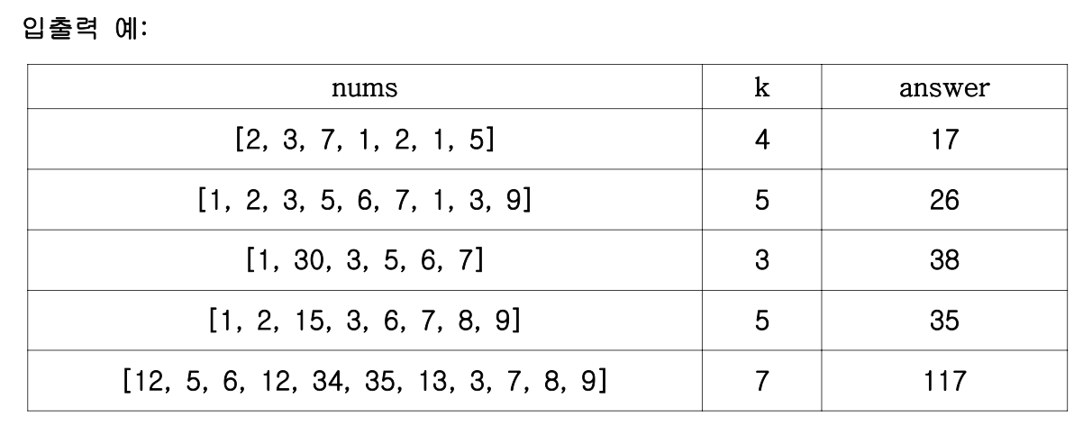 현수가 가져갈 수 있는 카드의 개수 k가 주어지면 현수가 얻을 수 있는 최대점수를 반환하는 프로그램을 작성하세요.