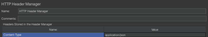 HTTP Request 샘플러 아래에 HTTP Header Manager를 추가하여 Content-Type 헤더를 설정해야한다.