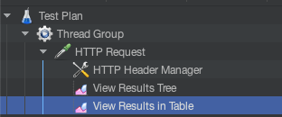 view Results Tree, Summary Report, View Results in Table 를 차례대로 생성해 준다.