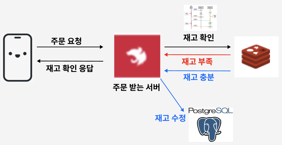 사용자의 주문 요청이 오고 요청한 구매를 원하는 갯수와 재고를 비교하여 요청을 수락하는 과정에서 RDB에 있는 count값을 확인 하는 것이 아니라 Redis에 재고에 대한 데이터를 저장하고 확인을 하는 것이다.