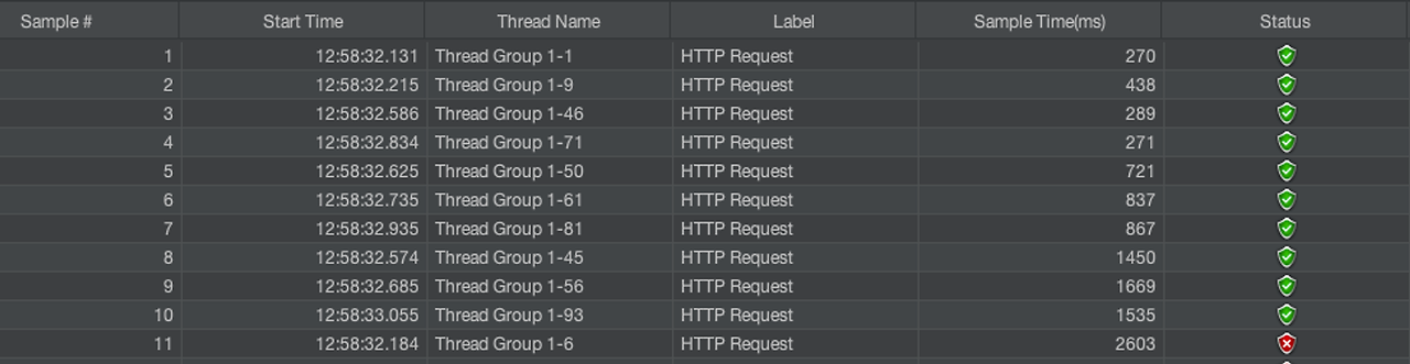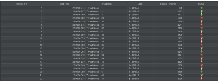 실제로 Jmeter로 부하테스트를 진행해 보면 더 확실히 해당 문제를 알수 있다.