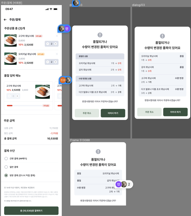 그리고 해당 화면과 같이 주문할 메뉴 항목을 선택하고 결제하기 버튼을 눌러 주문결제를 하게 된다.