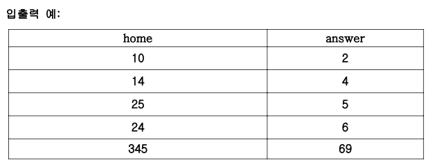 매개변수 home에 현수의 집의 위치가 주어지면 놀이터에서 집까지 최소 몇 번의 점프로 집에 도착할 수 있는지 최소 점프횟수를 구하여 반환하세요.