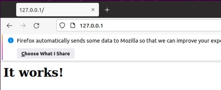 127.0.0.1 에 접속시 'It works!' 라는 문구가 뜨면 성공 ~~